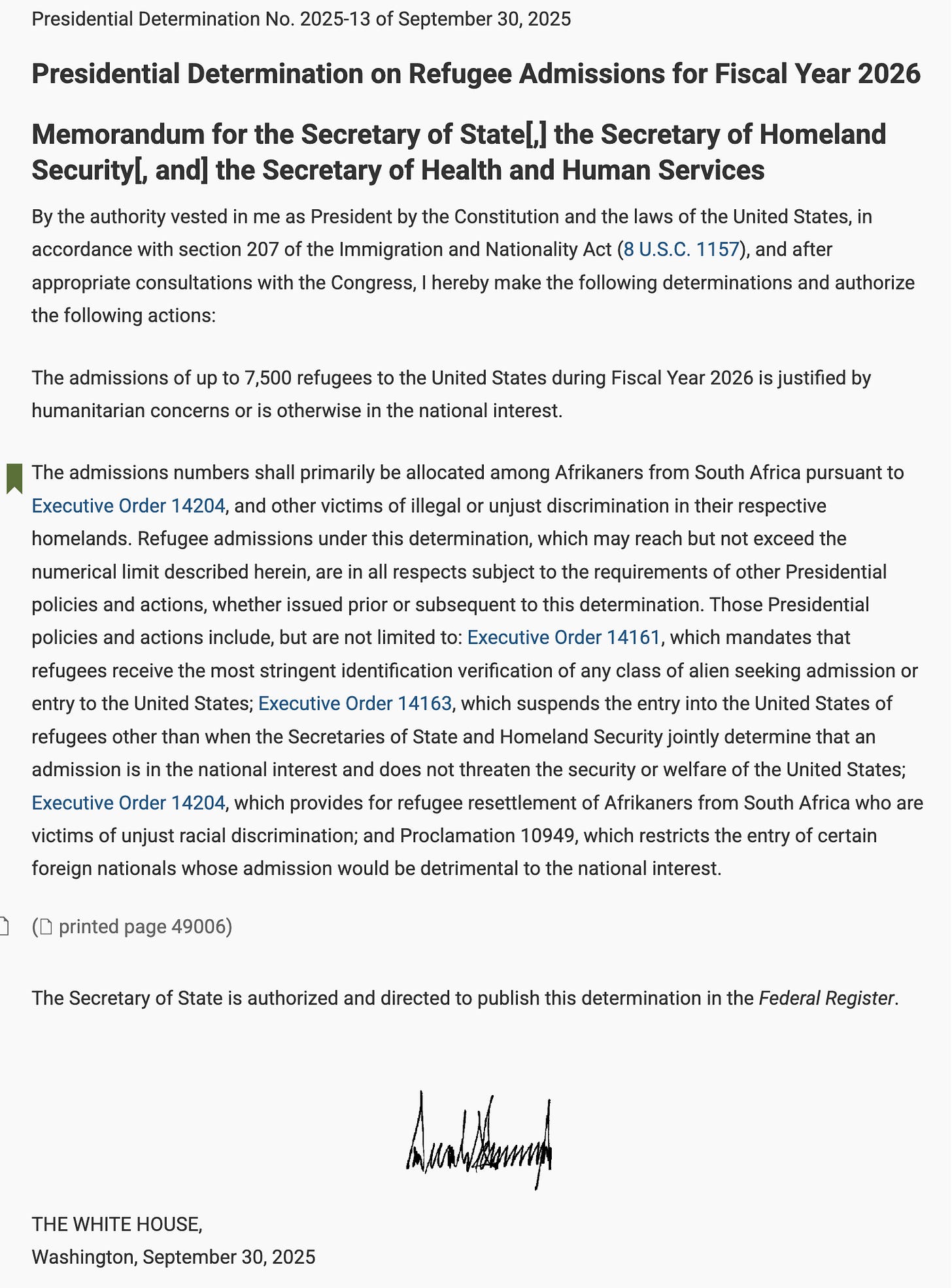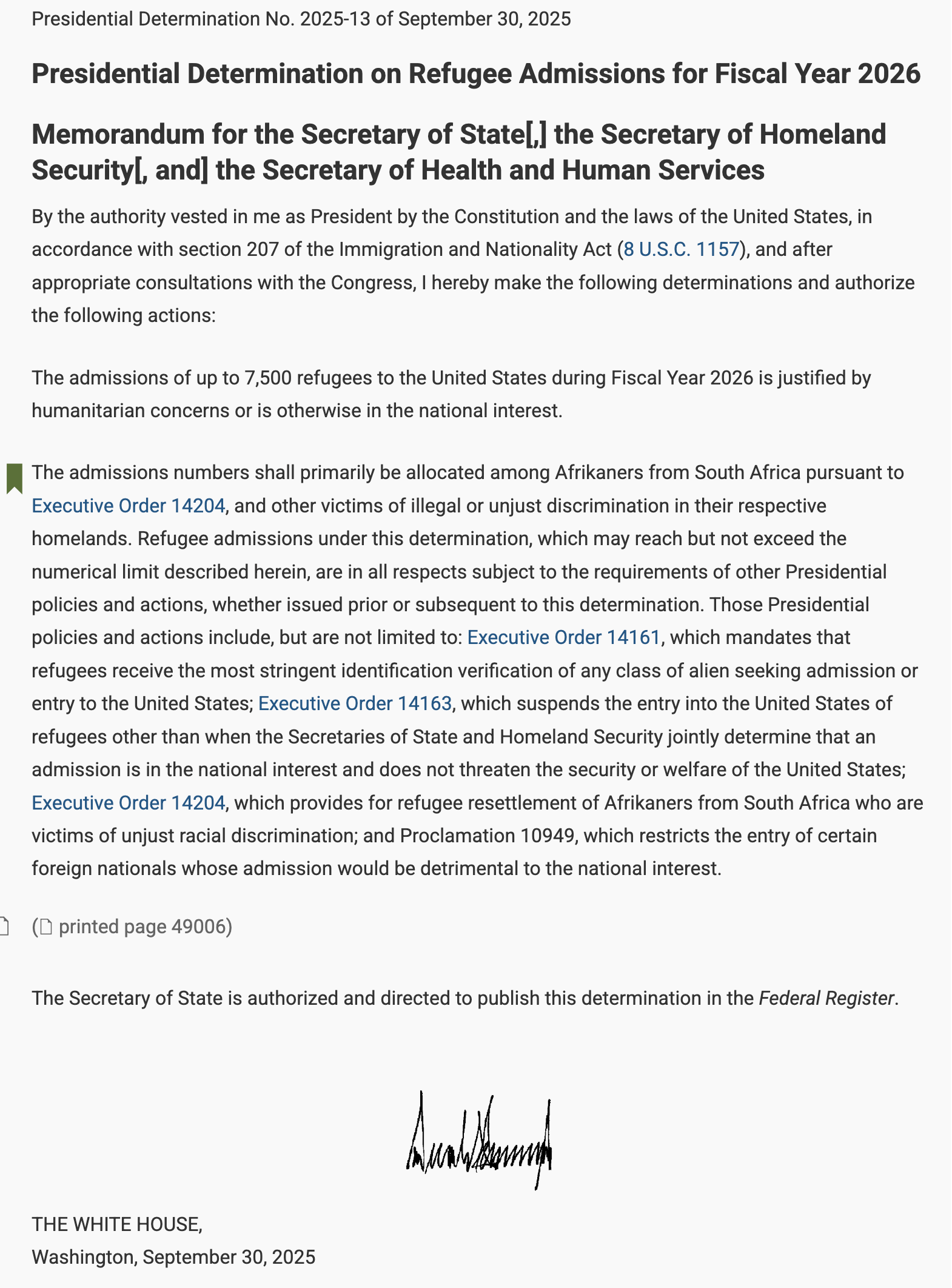 In 2025, President Trump dramatically cut back the number of refugees from other countries, declaring that White Afrikaners from South Africa should receive priority over everyone else.